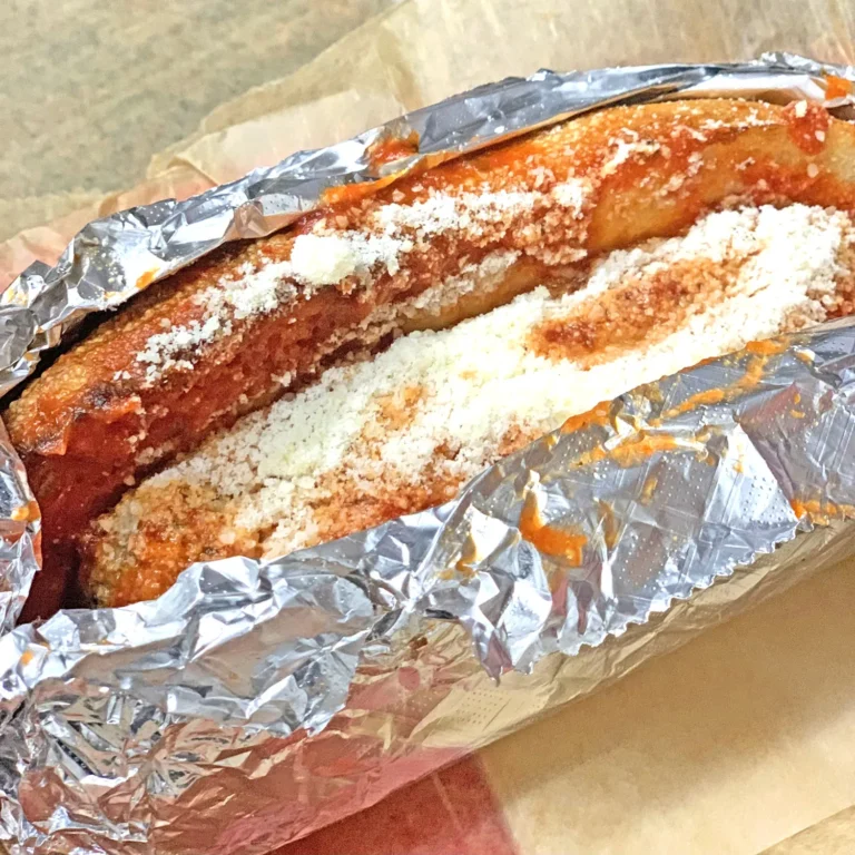 A delicious and very filling sub loaded with Italian meatballs, red sauce, provolone and Parmesan cheese, toasted on a crunchy hoagie. Served with chips.